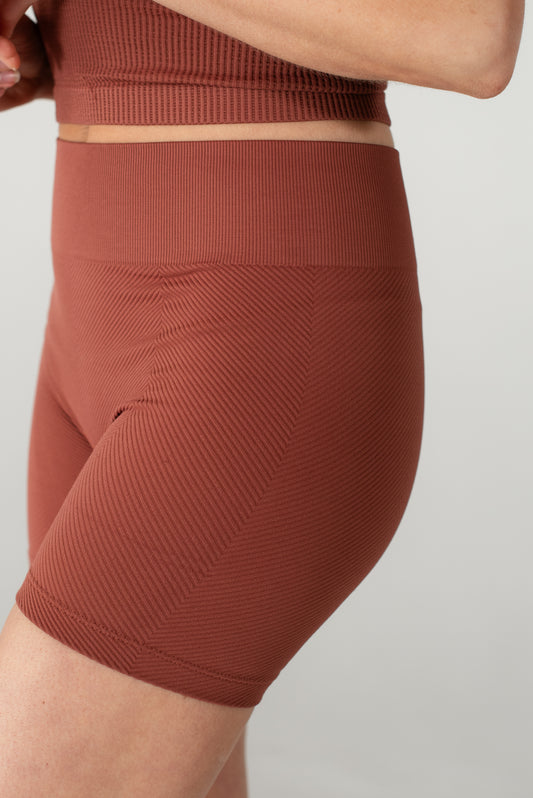 Our Aero shorts are a gym fanatic’s dream. With a flattering3” inseam, they’re designed to show off the strong, sculpted legs you’ve worked so hard for. Made from seamless, ultra-soft fabric, they eliminate the front seam for a smooth, chafe-free fit. The high 4” waistband provides just the right amount of compression, hugging your waist without rolling down, while the fabric stays snug against your skin to prevent rolling up. Sweat-wicking and breathable they keep you cool and confident during your workouts. Dress them up with a cozy sweatshirt and sneaker for a casual, on-the-go look, or pair them with any of our seamless tops or bras for the ultimate matching set.