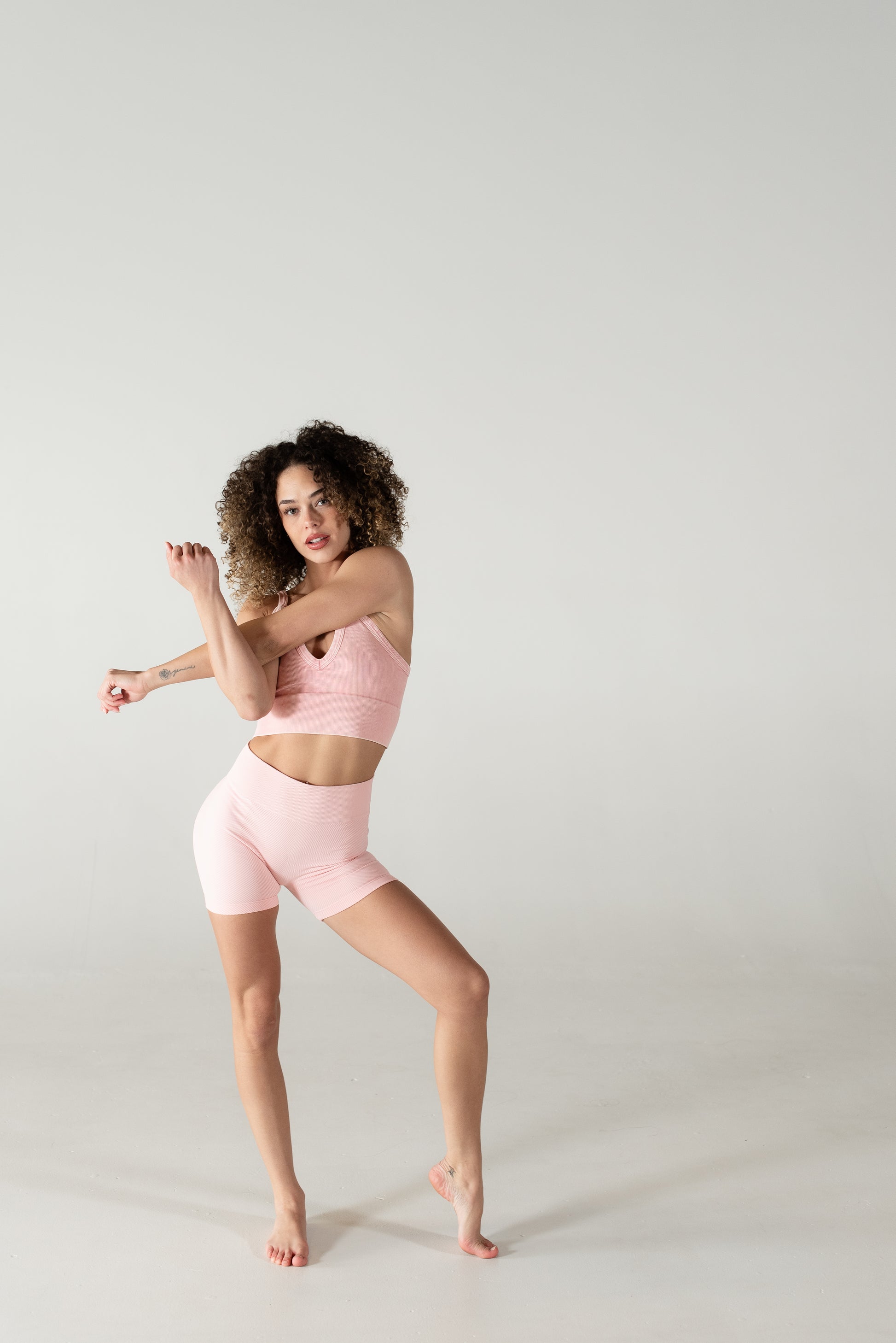 Our Aero shorts are a gym fanatic’s dream. With a flattering 3” inseam, they’re designed to show off the strong, sculpted legs you’ve worked so hard for. Made from seamless, ultra-soft fabric, they eliminate the front seam for a smooth, chafe-free fit. The high 4” waistband provides just the right amount of compression, hugging your waist without rolling down, while the fabric stays snug against your skin to prevent rolling up. Sweat-wicking and breathable they keep you cool and confident during your workouts. Dress them up with a cozy sweatshirt and sneaker for a casual, on-the-go look, or pair them with any of our seamless tops or bras for the ultimate matching set.
