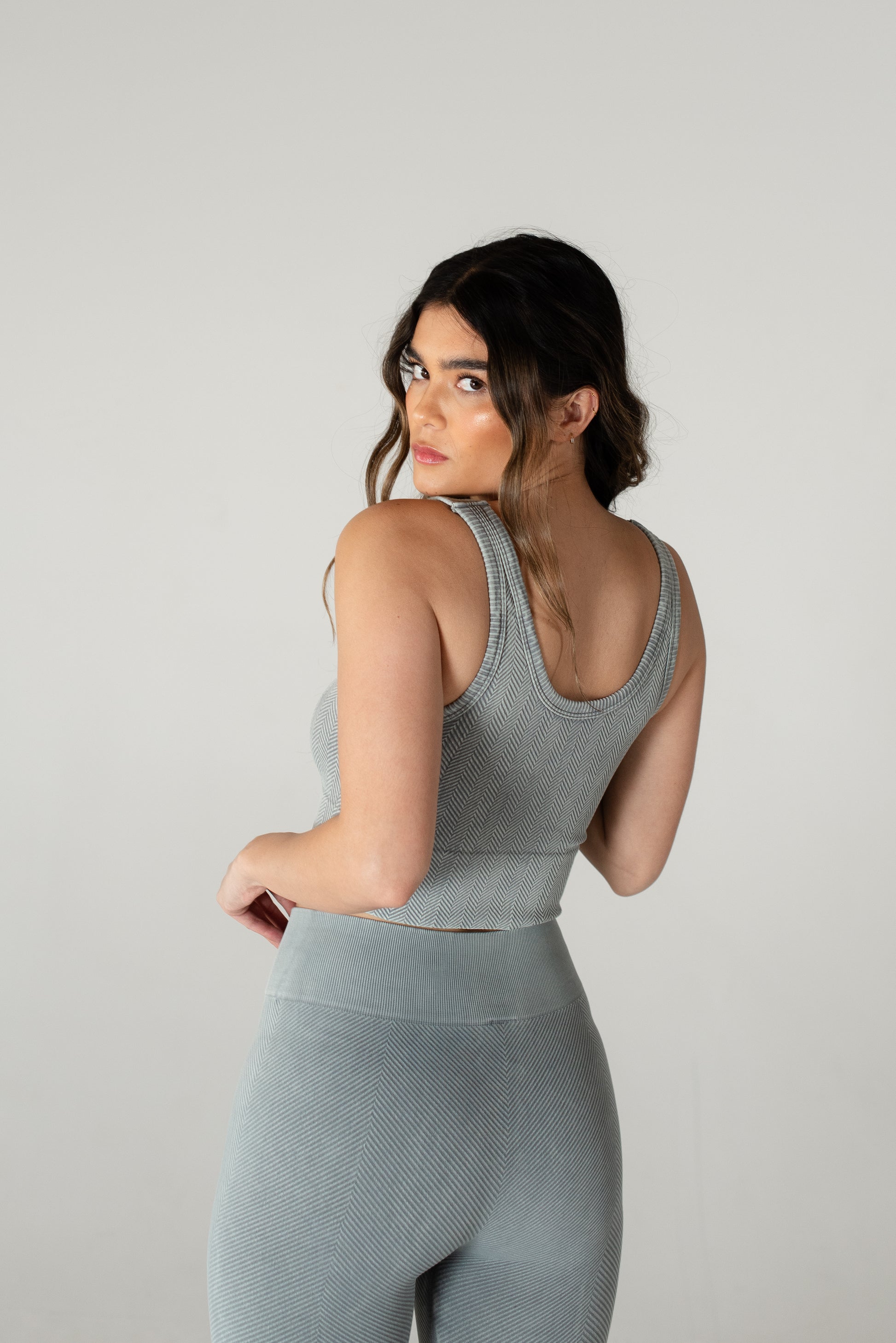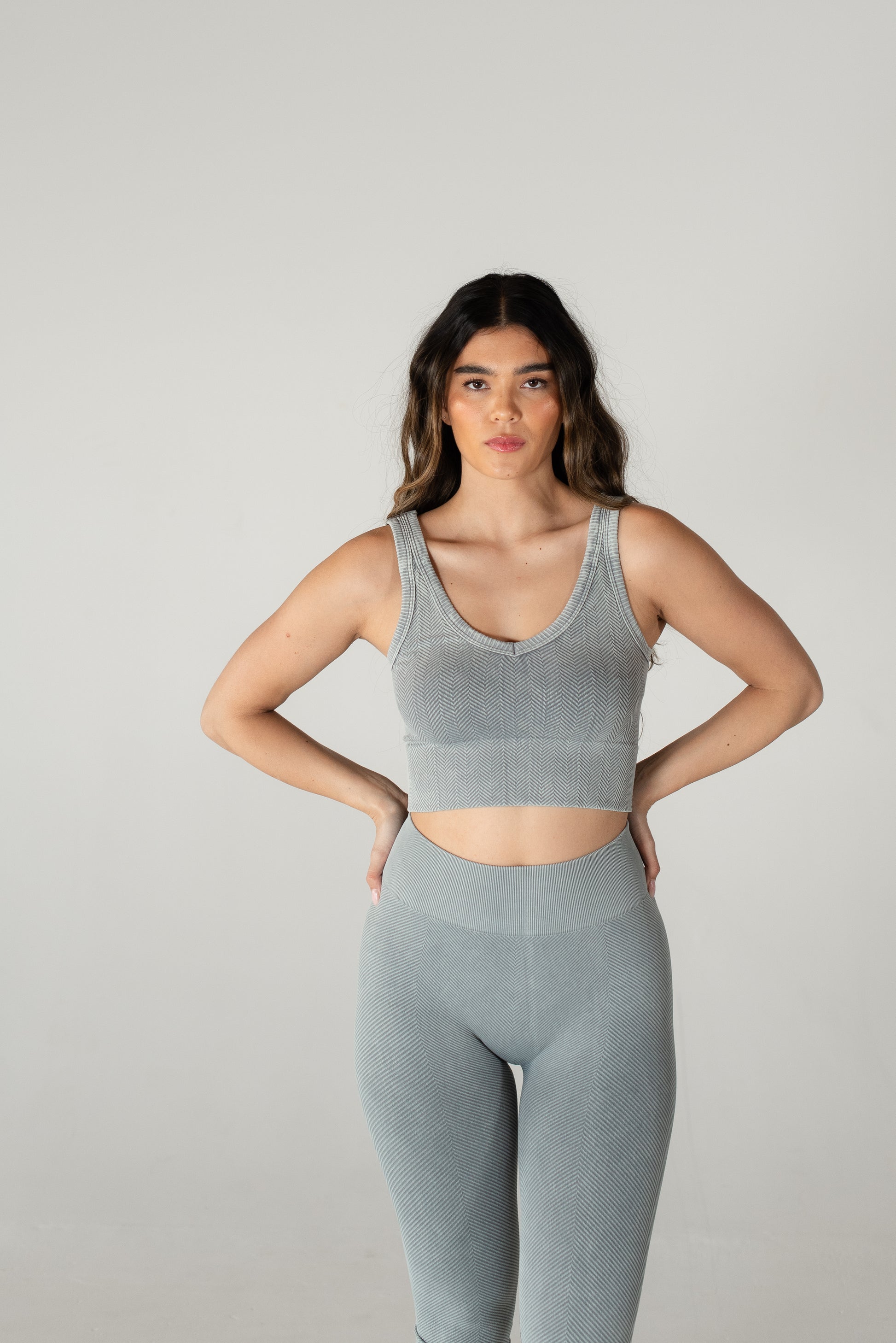 Hello Carmen top, the seamless, two-in-one essential you didn’t know you needed. With a reversible design, you can wear it as a high round neck or a flattering V-neck, because options are everything. Made with breathable, sweat-wicking fabric, this top keeps you cool and comfortable no matter what your day holds. The herringbone design isn’t just for style, it’s built for support. Whether you have a smaller or fuller chest, you’ll feel secure enough to go braless while still getting the lift and hold you need. The added compression makes it perfect for high-impact workouts while giving you’re a sculpted, flattering fit.