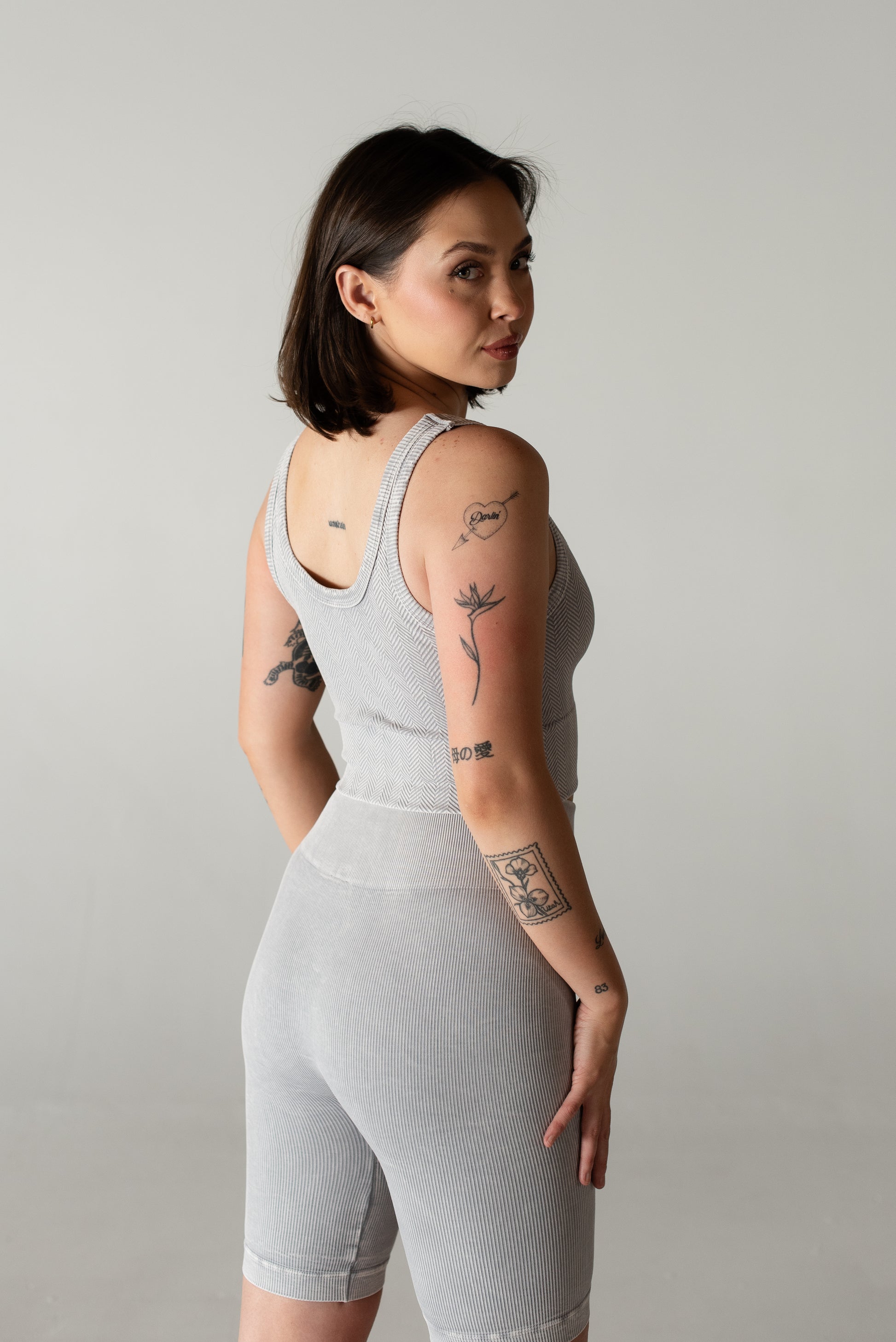 Hello Carmen top, the seamless, two-in-one essential you didn’t know you needed. With a reversible design, you can wear it as a high round neck or a flattering V-neck, because options are everything. Made with breathable, sweat-wicking fabric, this top keeps you cool and comfortable no matter what your day holds. The herringbone design isn’t just for style, it’s built for support. Whether you have a smaller or fuller chest, you’ll feel secure enough to go braless while still getting the lift and hold you need. The added compression makes it perfect for high-impact workouts while giving you’re a sculpted, flattering fit.
