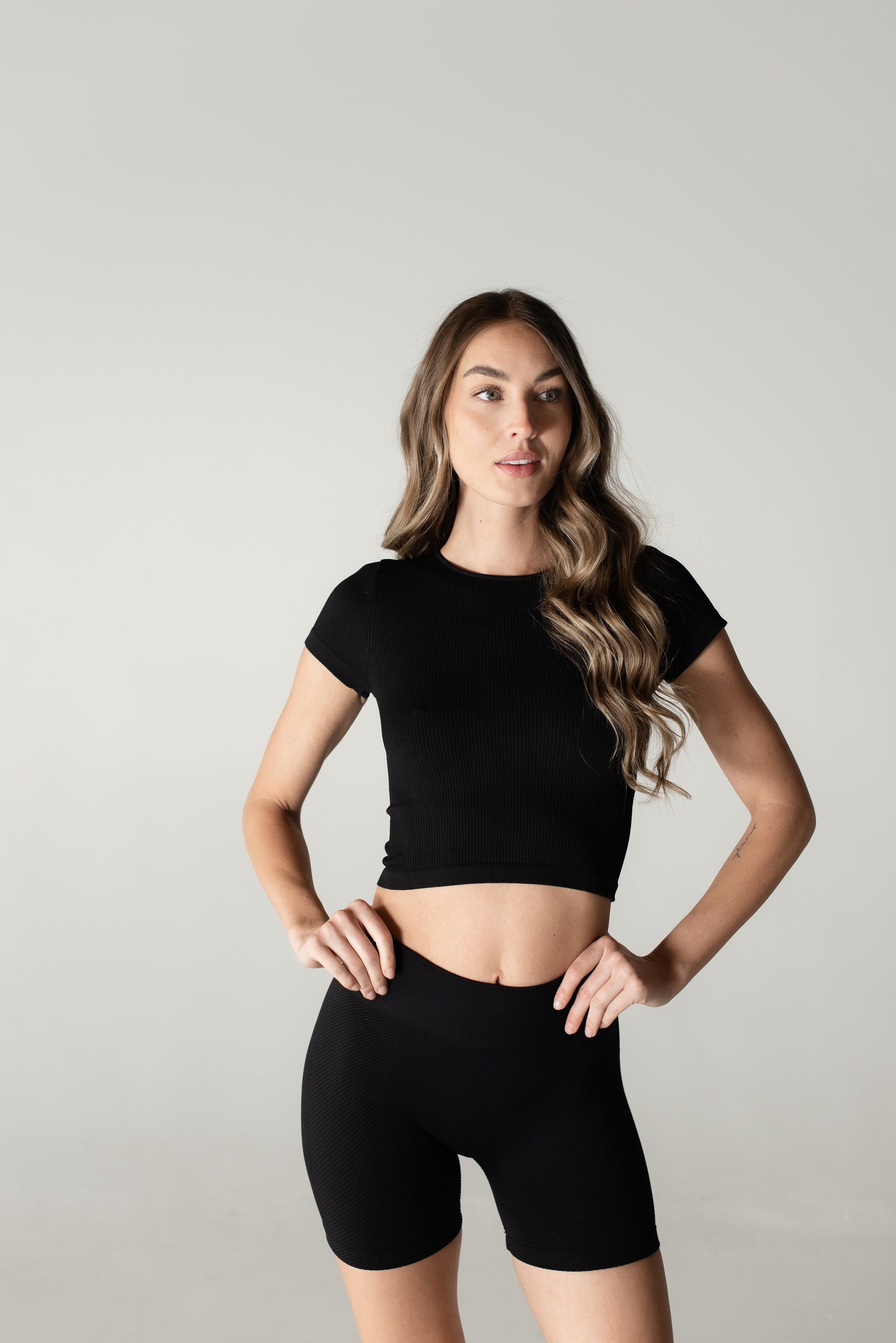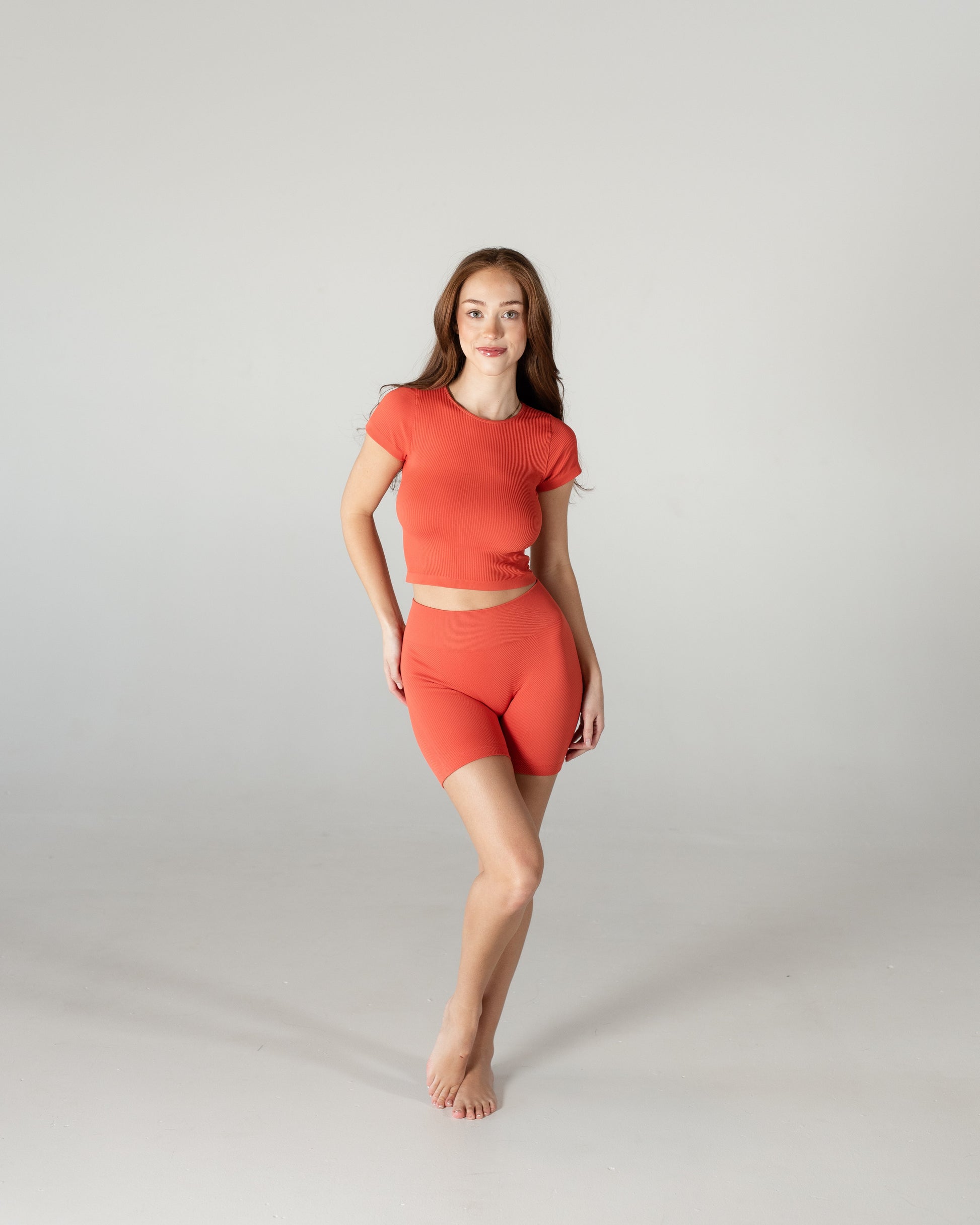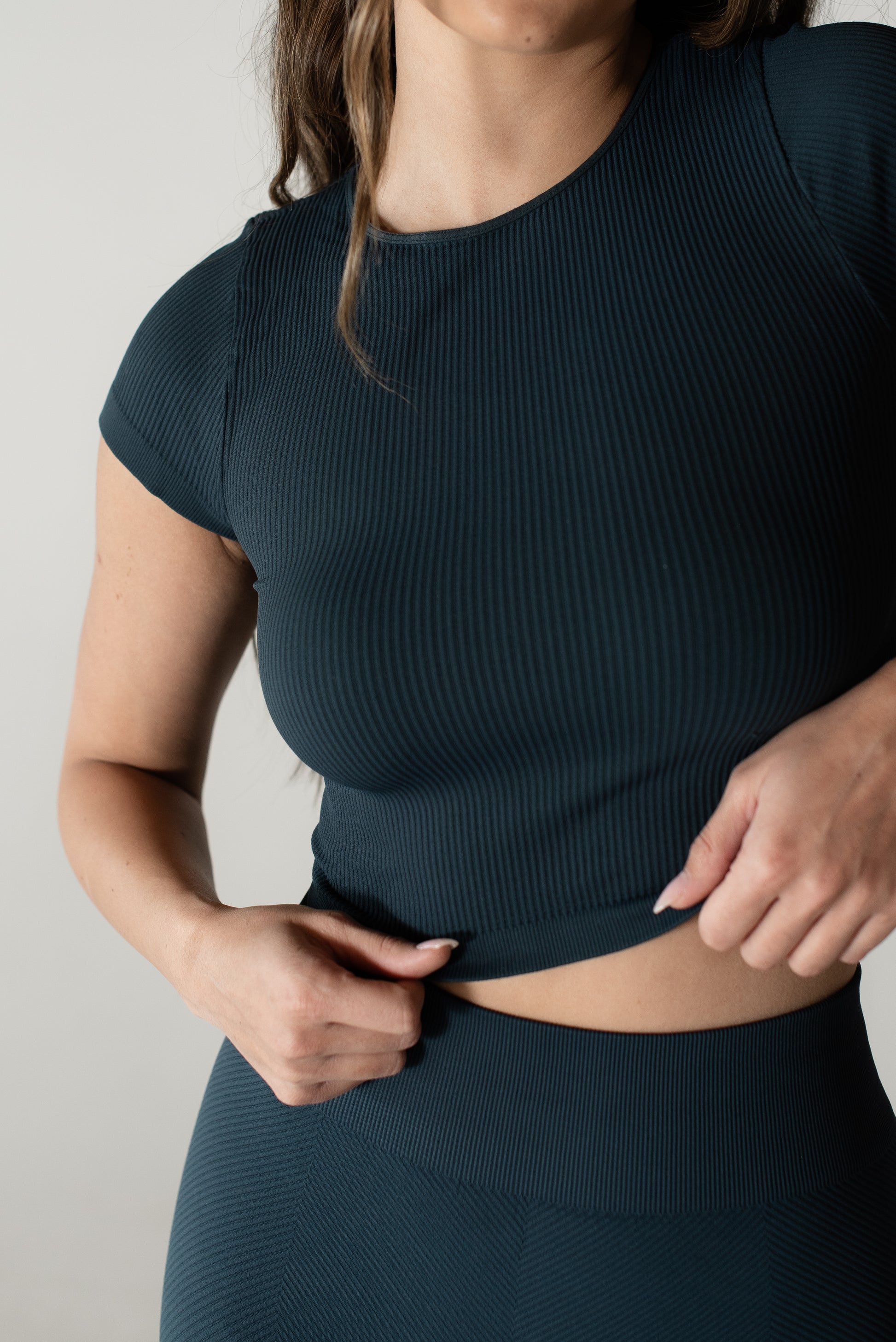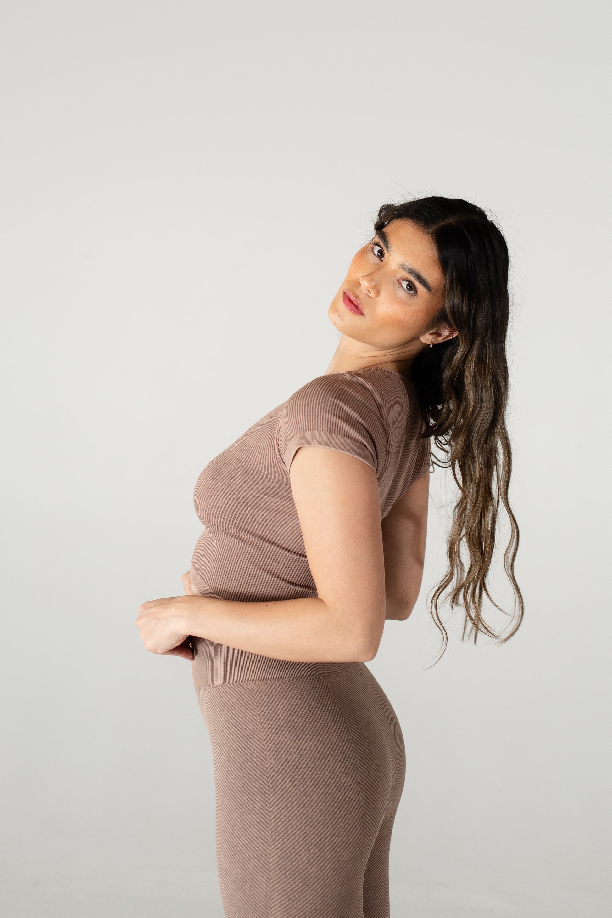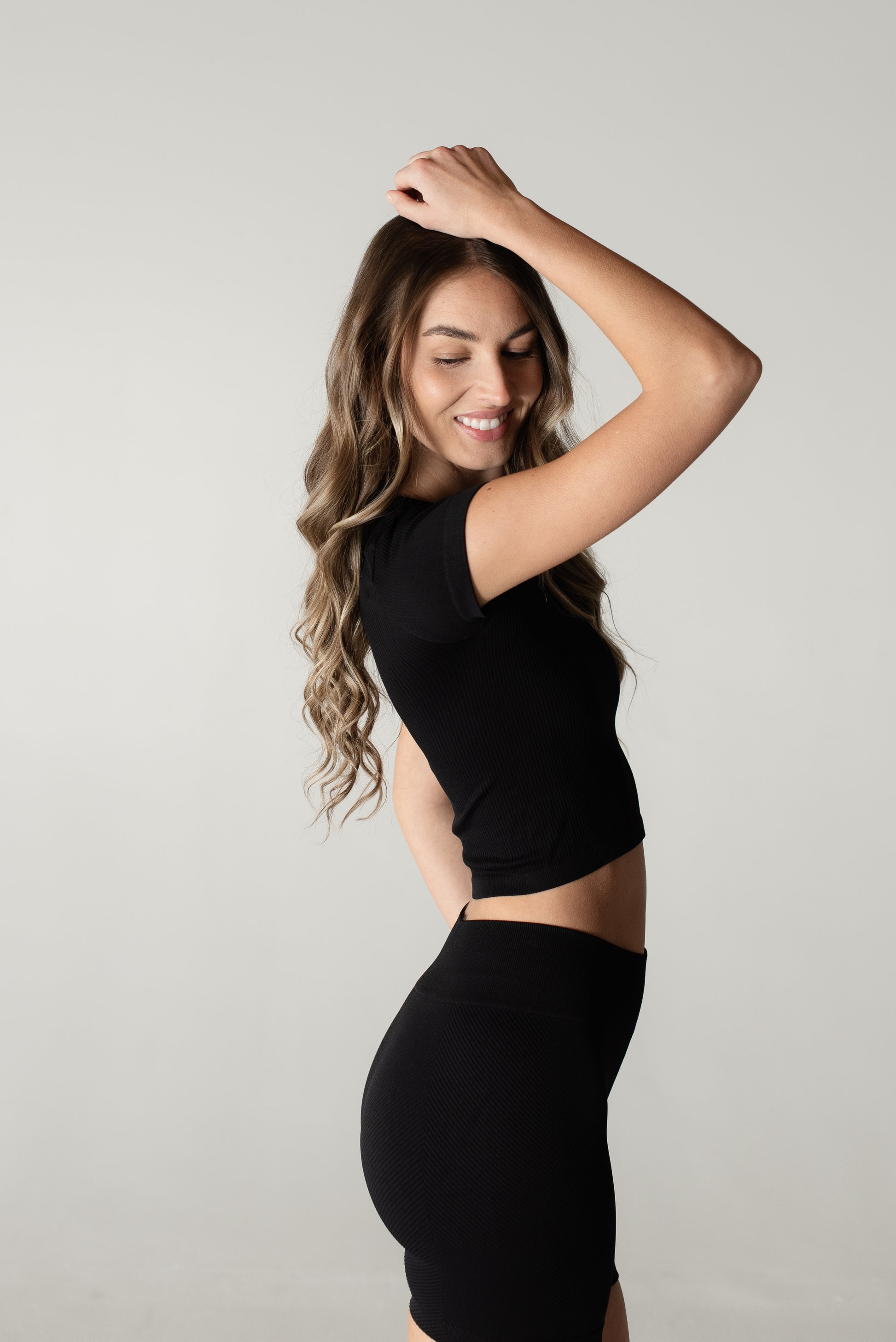 Meet Myles, the ultimate everyday baby tee, so soft and comfortable that you’ll want it in every color! This fan-favorite is made with seamless, breathable, and sweat-wicking fabric, keeping you cool and confident all day long. The ribbed design provides just the right amount of compression; smoothing your back, supporting your chest, and hugging your waist for a flattering fit. Plus, the stretchy-yet-snug fabric moves with you so there’s no uncomfortable tightness around your arms. Whether you’re hitting the gym or styling it of everyday wear, Myles is the perfect go-to. Once you try it, you won’t’ want to take it off!