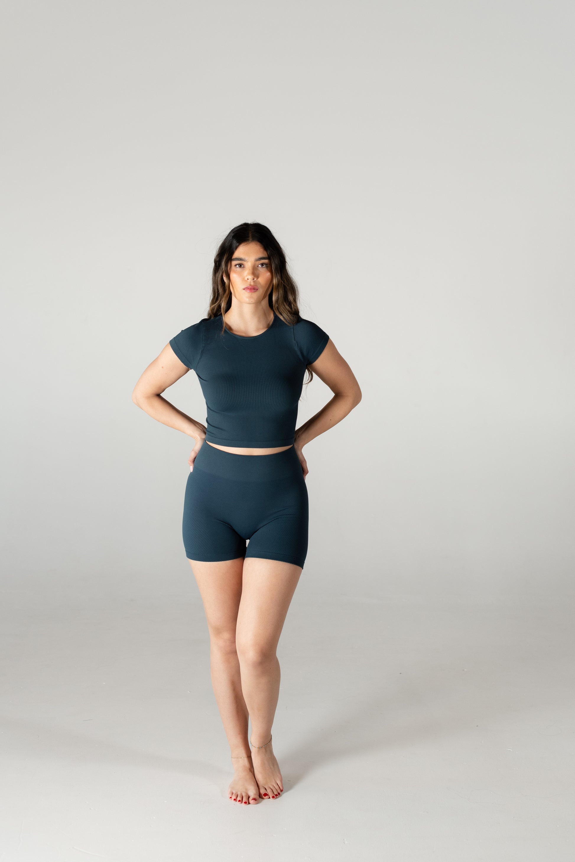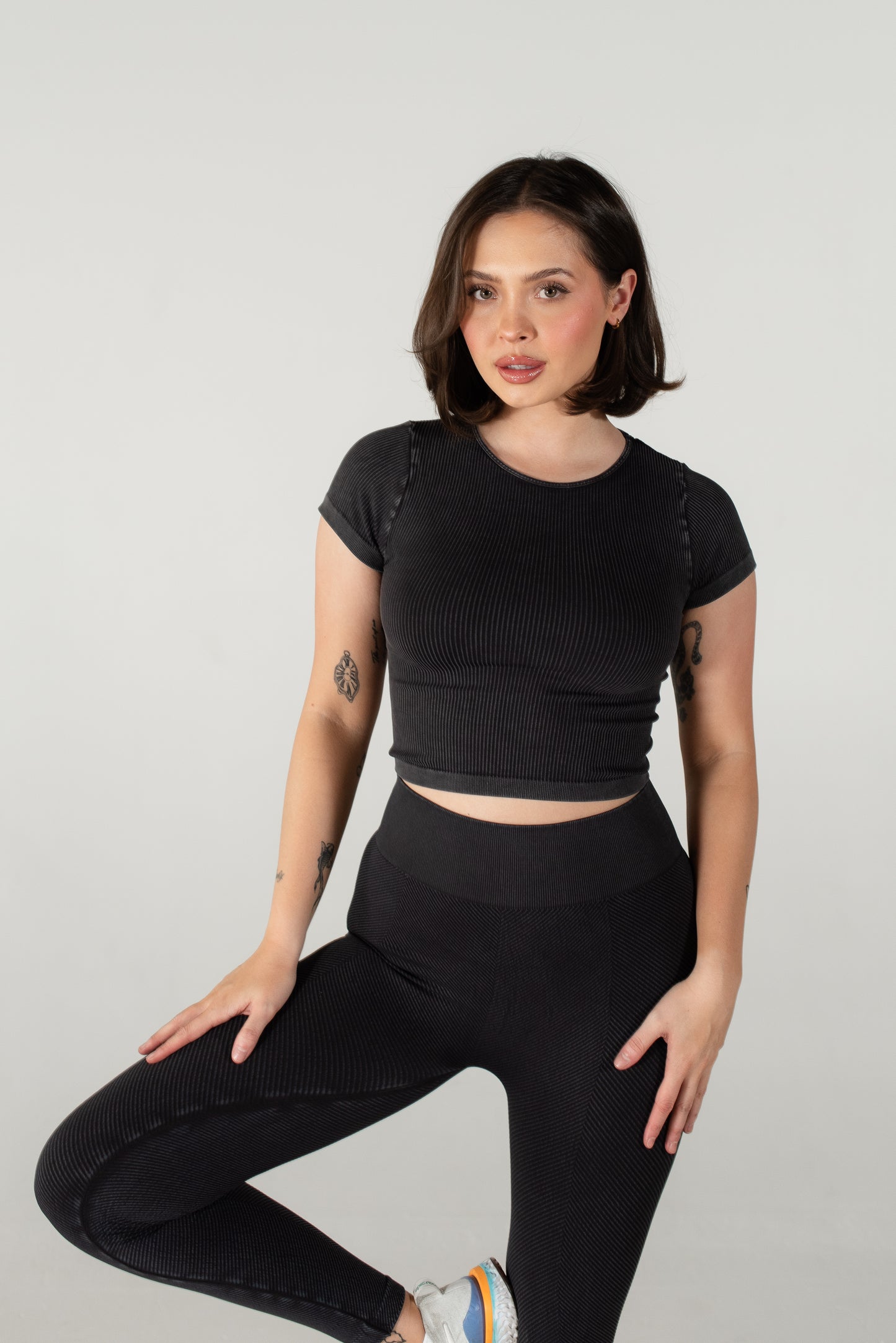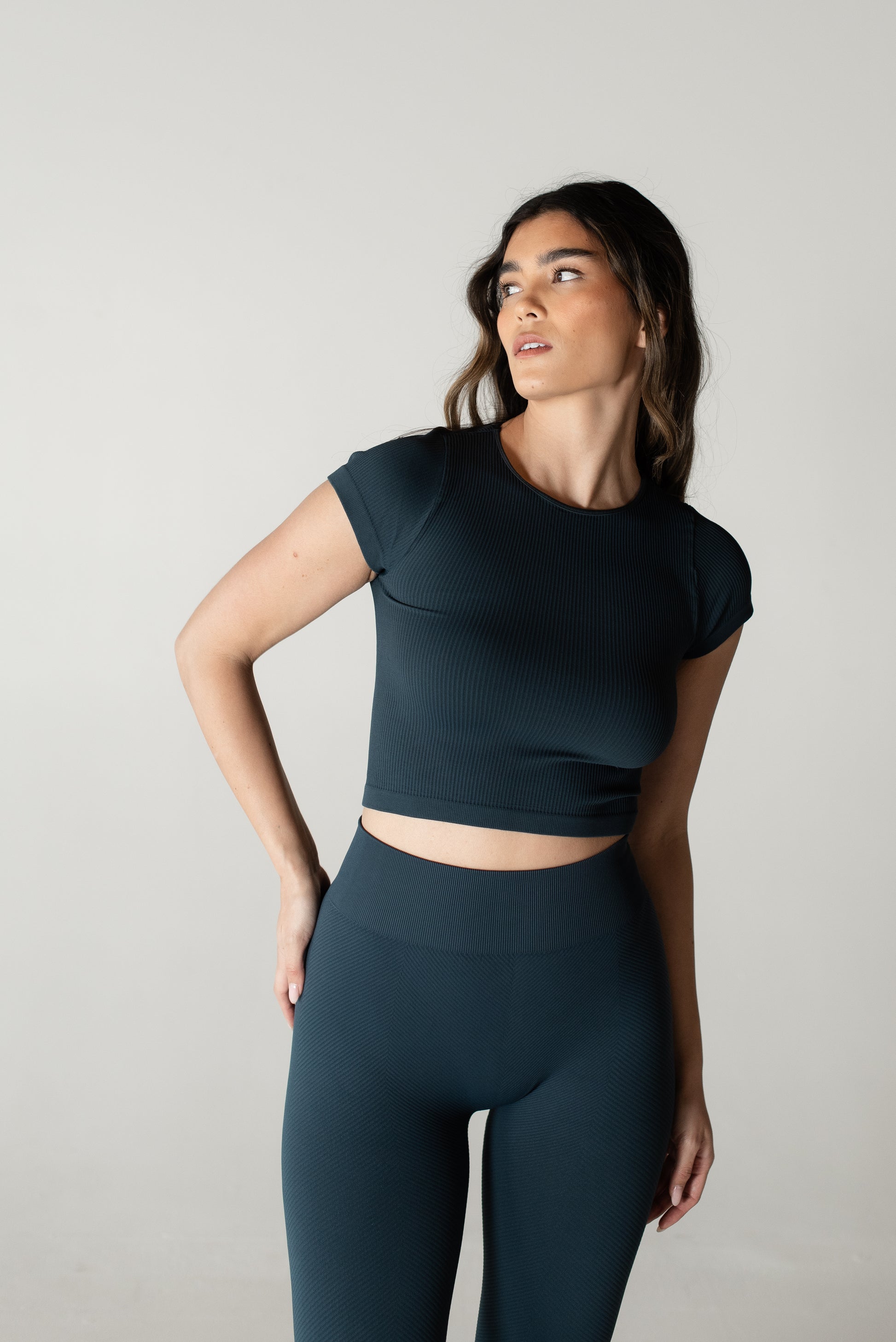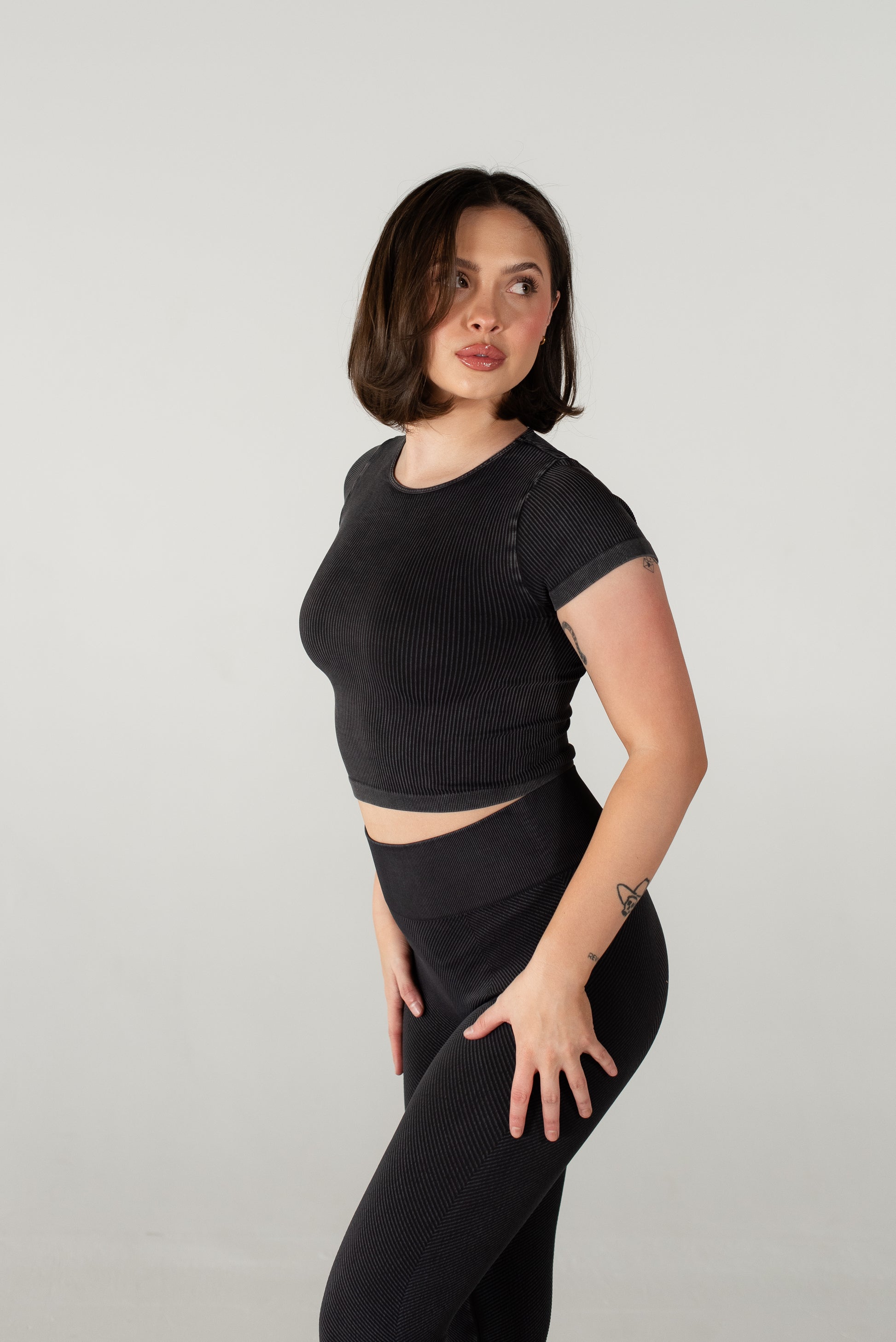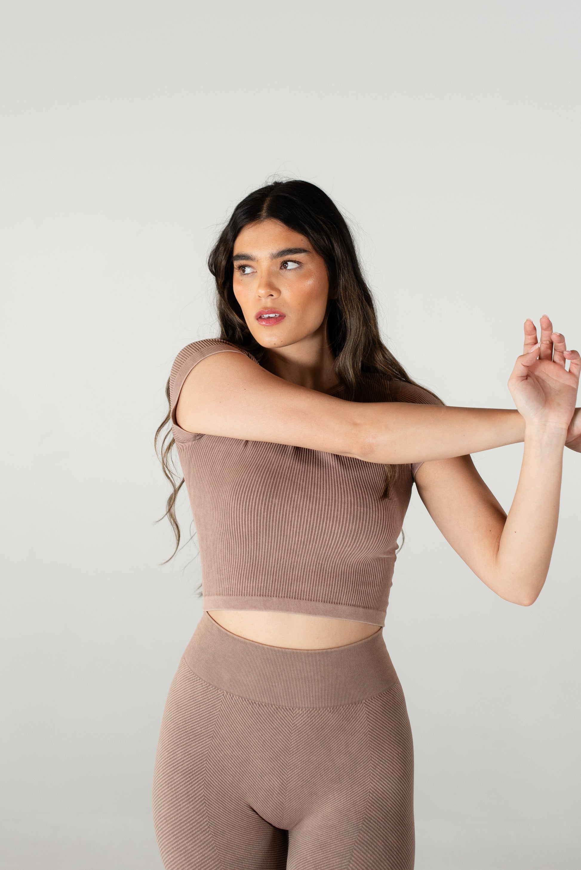 Meet Myles, the ultimate everyday baby tee, so soft and comfortable that you’ll want it in every color! This fan-favorite is made with seamless, breathable, and sweat-wicking fabric, keeping you cool and confident all day long. The ribbed design provides just the right amount of compression; smoothing your back, supporting your chest, and hugging your waist for a flattering fit. Plus, the stretchy-yet-snug fabric moves with you so there’s no uncomfortable tightness around your arms. Whether you’re hitting the gym or styling it of everyday wear, Myles is the perfect go-to. Once you try it, you won’t’ want to take it off!