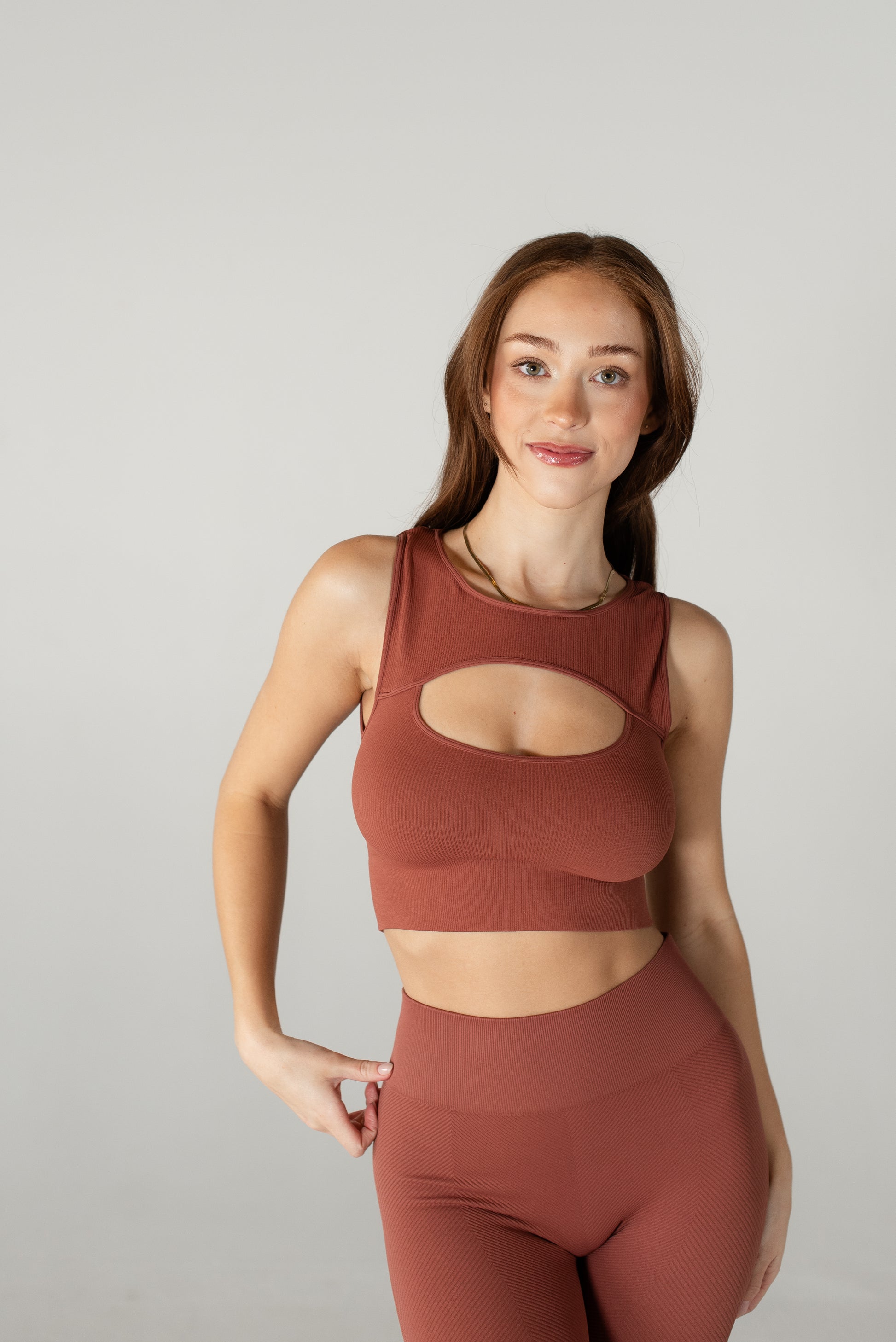 Welcome to my closet Pax. The front keyhole detail adds a chic and breathable design element, making it both fashionable and functional. Made from soft, stretchy fabrics, it provides a snug, supportive fit without restricting movement. Perfect for casual wear, activewear, or layering.