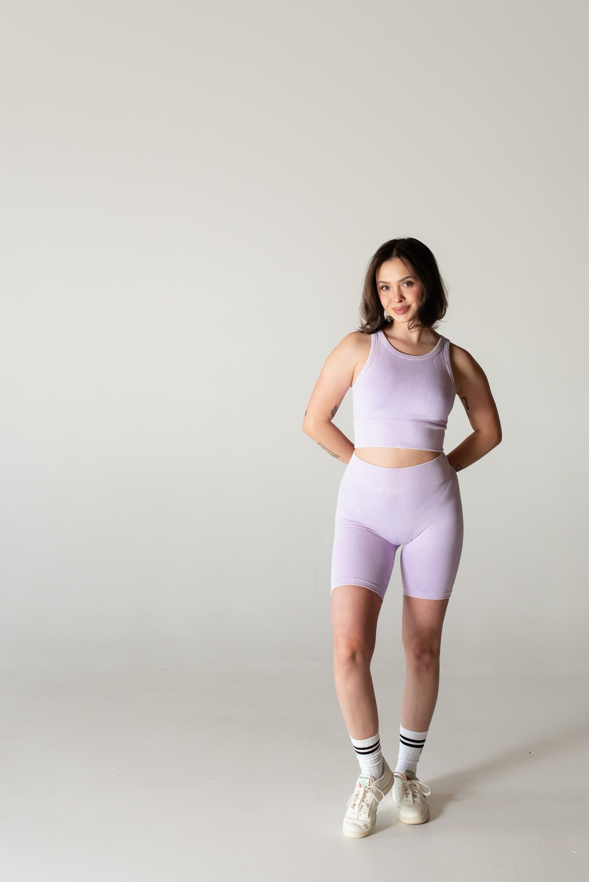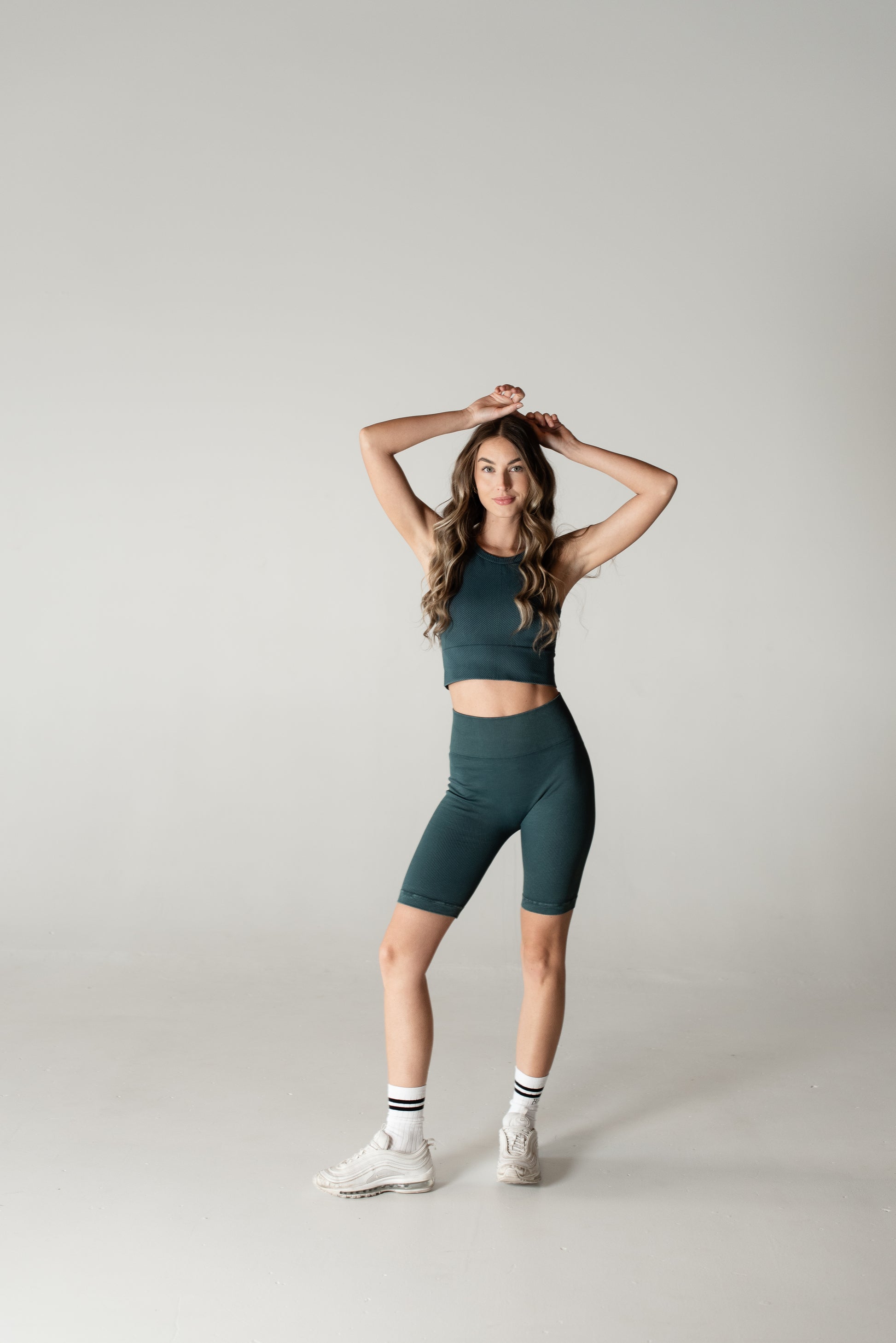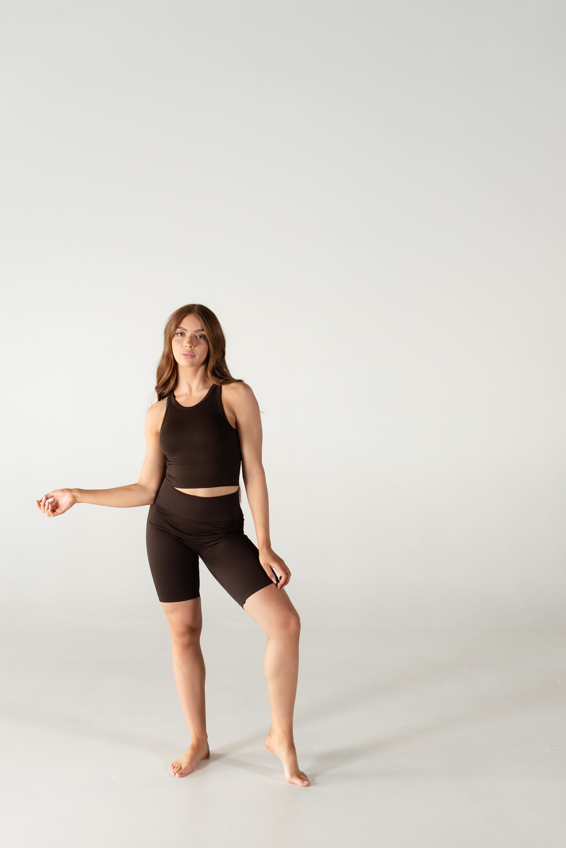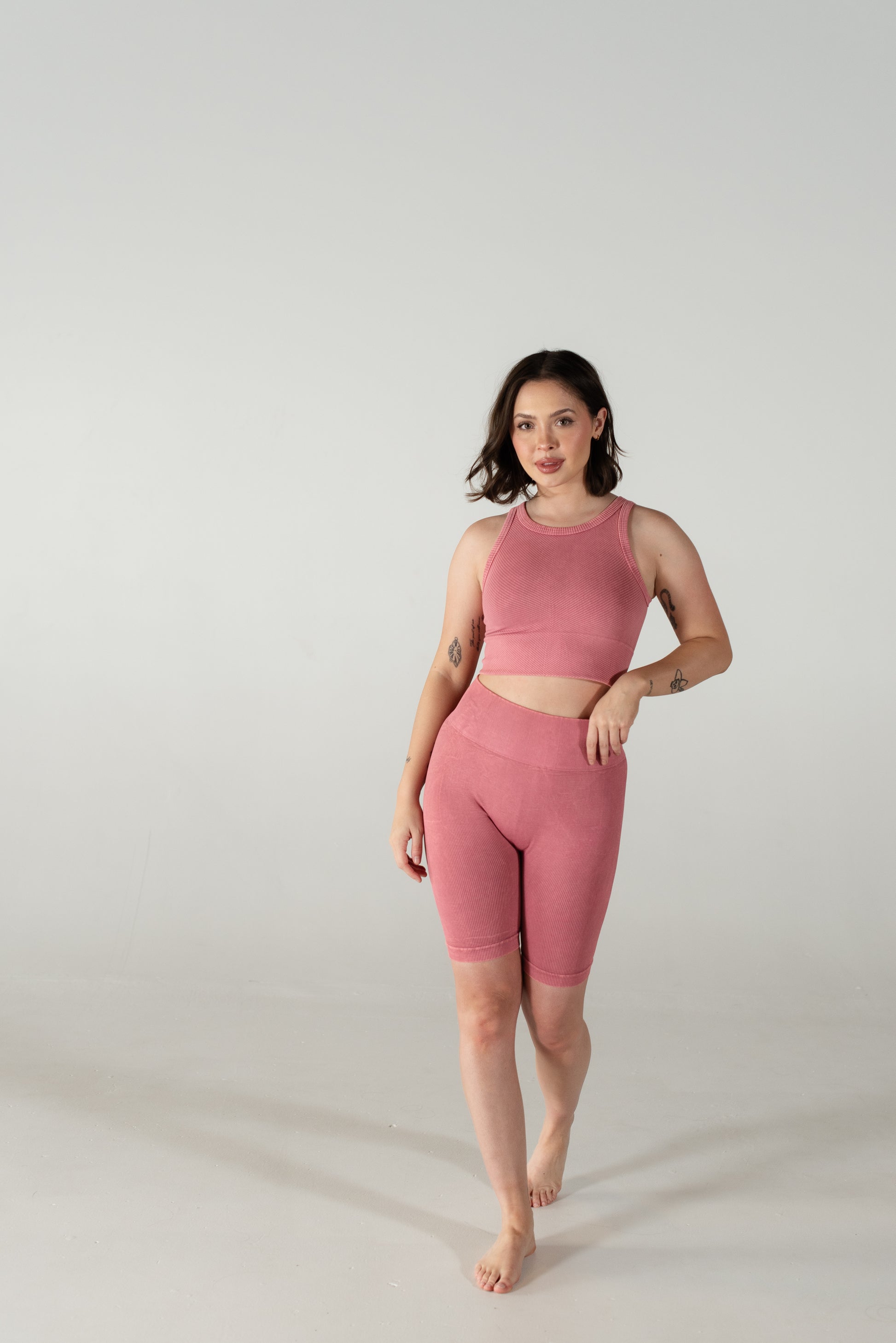 Meet your new favorite workout top, the Skye top. Designed with a sleek high neck and stylish chevron pattern, it’s perfect for anyone who loves a little extra coverage without sacrificing style. The seamless design makes it super soft, breathable, and sweat-wicking, so you stay cool and comfortable no matter how sweaty you are. But here’s the best park, the chevron design adds compression, giving you extra support and a sculpted fit that holds you in all the right places. No need for a bra (yes, really) and it smooths back bulges for a sleek, flattering look. Plus the 3” waistband keeps everything in place so you don’t have to deal with annoying roll-ups. Pair it with any of our seamless bottoms for a matching set that’s as functional as it is fashionable.