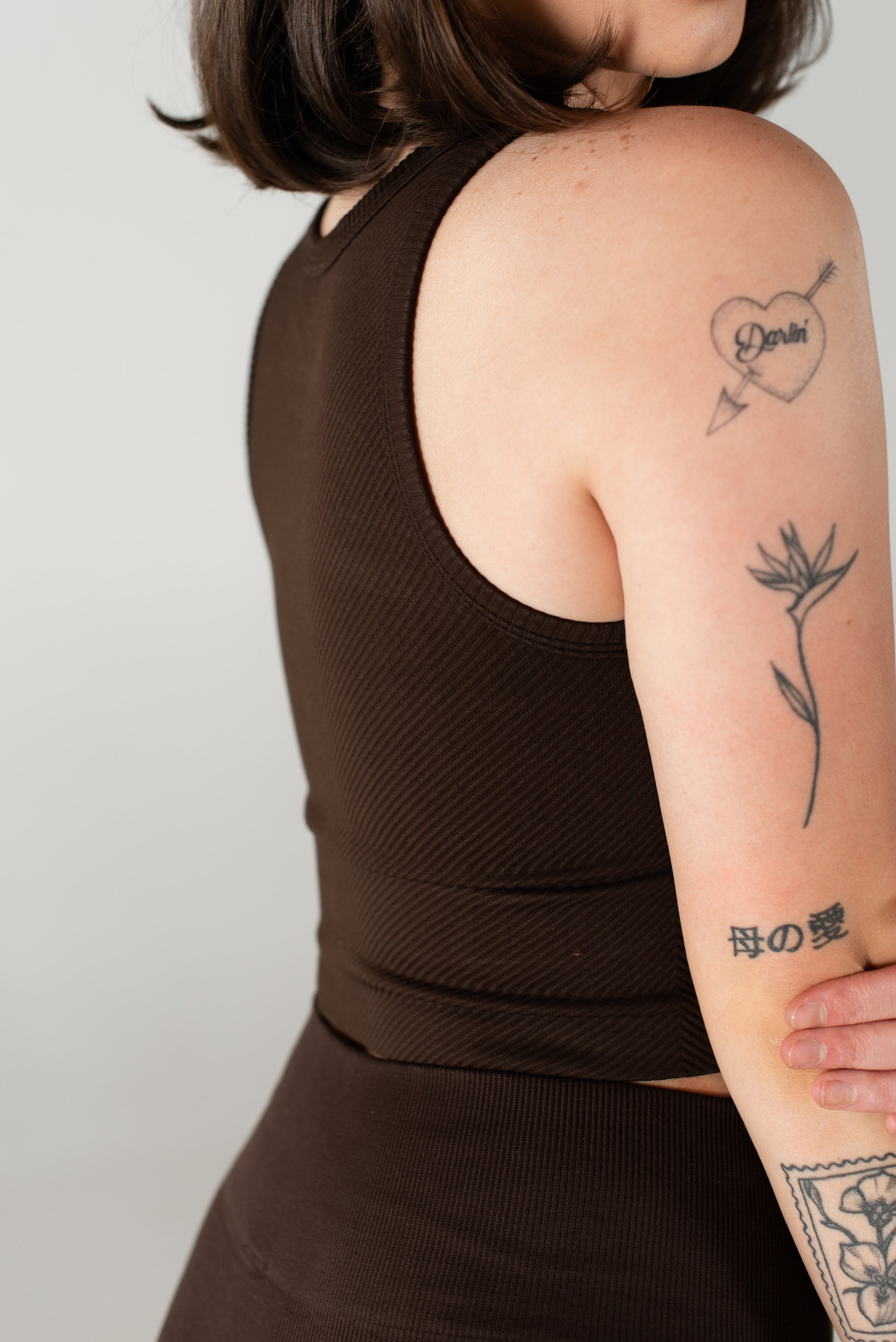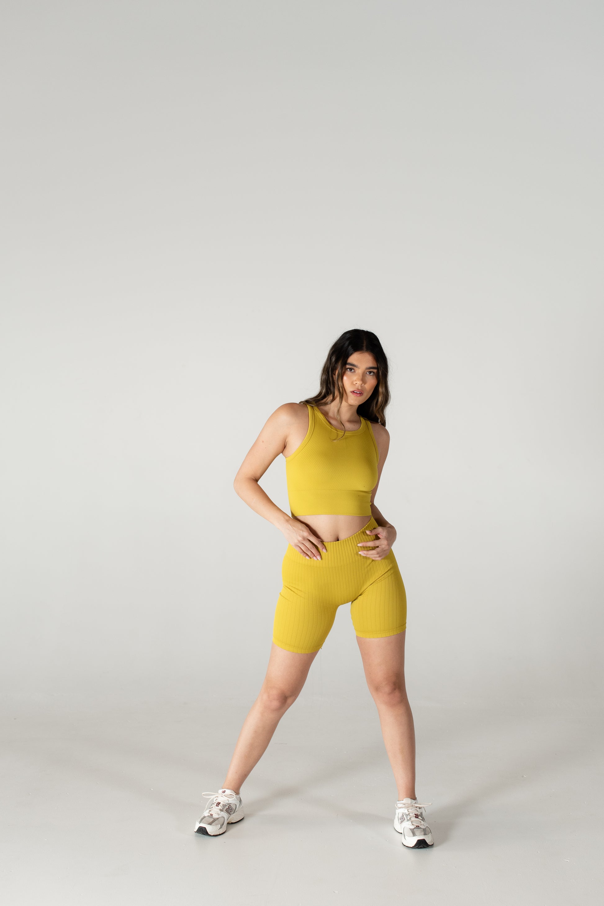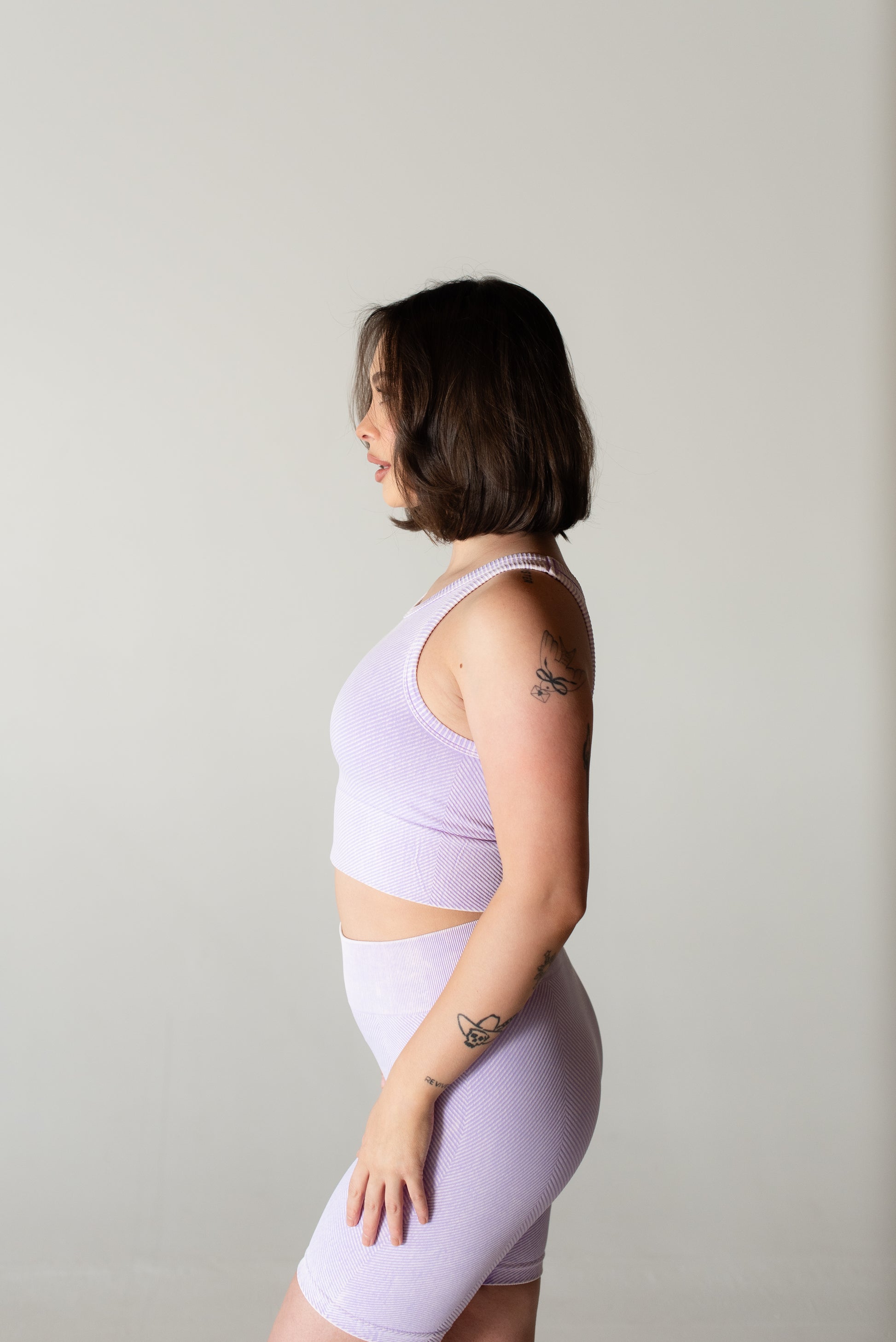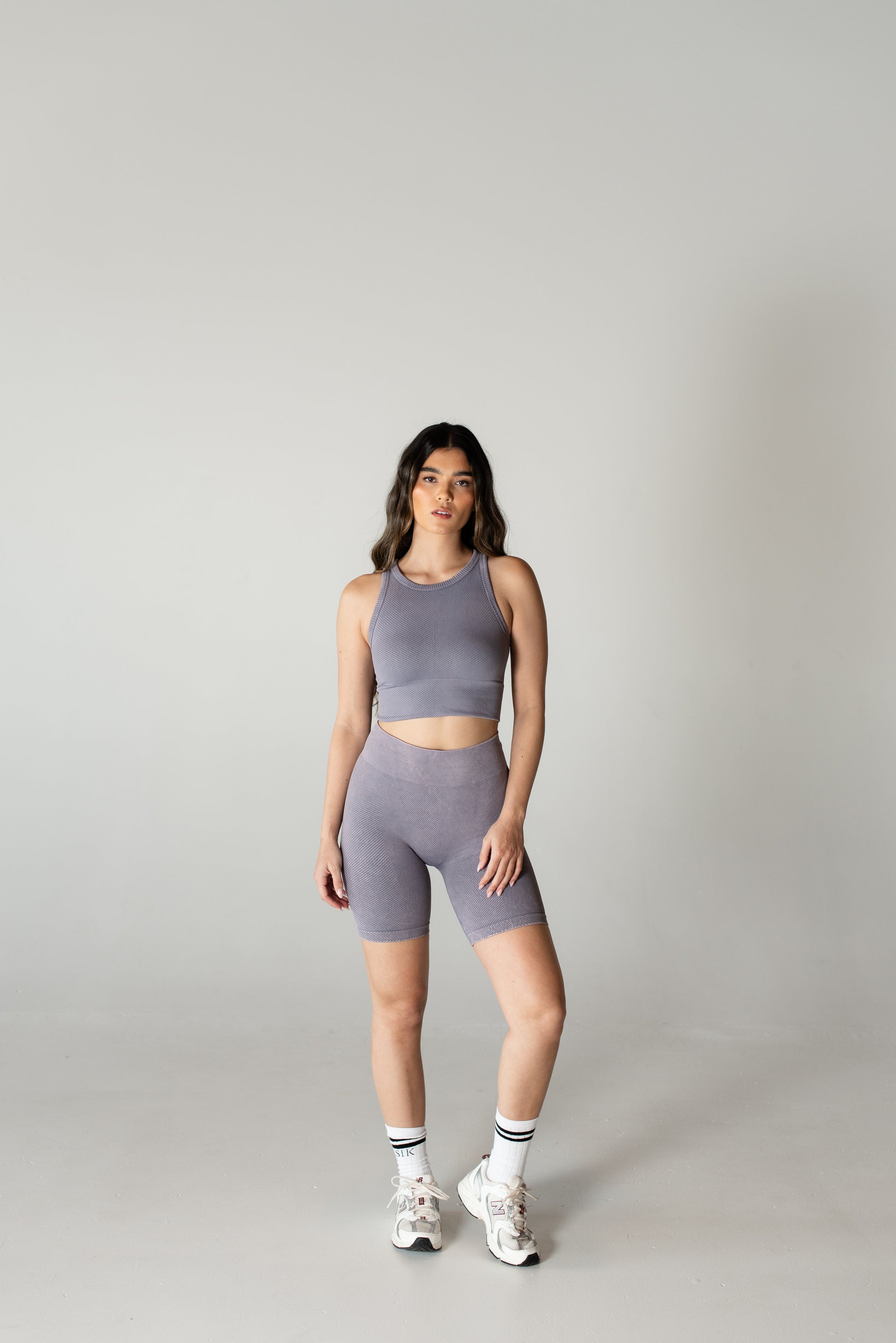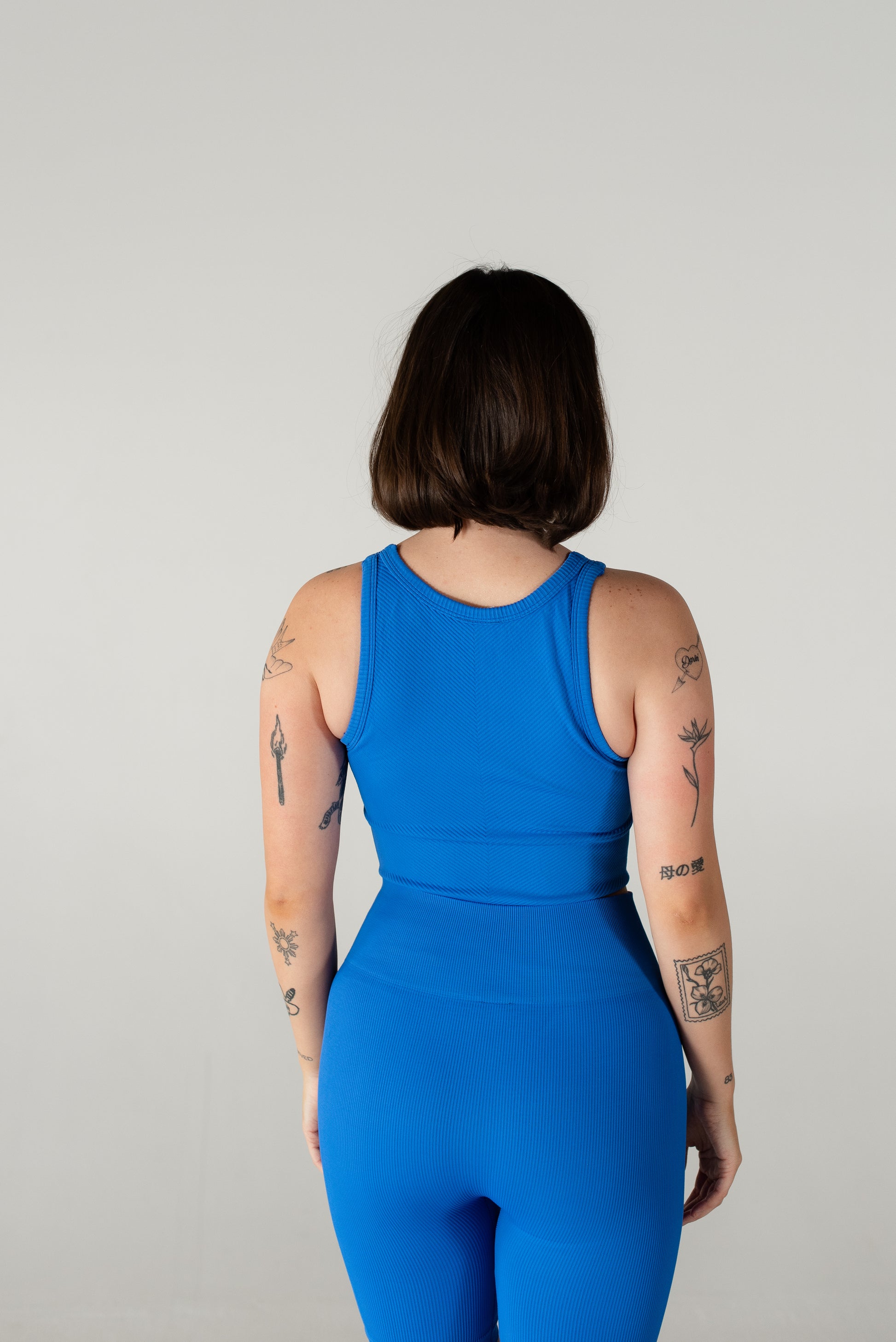 Meet your new favorite workout top, the Skye top. Designed with a sleek high neck and stylish chevron pattern, it’s perfect for anyone who loves a little extra coverage without sacrificing style. The seamless design makes it super soft, breathable, and sweat-wicking, so you stay cool and comfortable no matter how sweaty you are. But here’s the best park, the chevron design adds compression, giving you extra support and a sculpted fit that holds you in all the right places. No need for a bra (yes, really) and it smooths back bulges for a sleek, flattering look. Plus the 3” waistband keeps everything in place so you don’t have to deal with annoying roll-ups. Pair it with any of our seamless bottoms for a matching set that’s as functional as it is fashionable.
